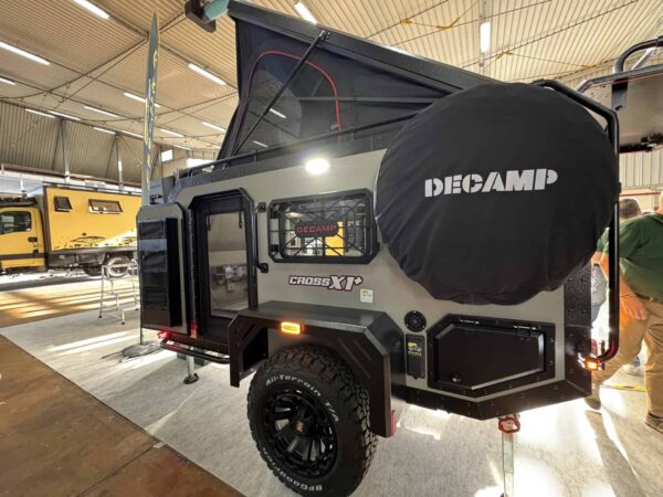 Decamp Cross X1+ (presente in fiera) e X3 sono i mini-trailer che ridefiniscono il concetto di caravan off-road. Monoscocca in alluminio e acciaio elettrozincato, isolamento a 5 strati da 40 mm, design a goccia studiato per ridurre resistenza e consumo.