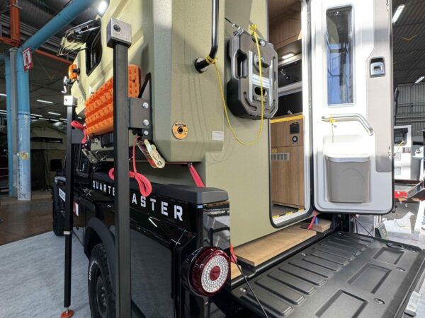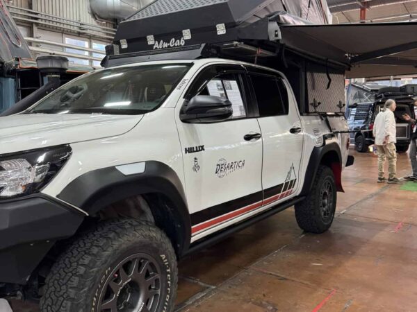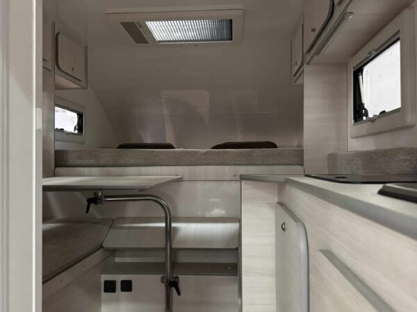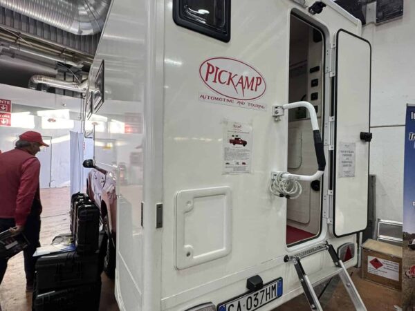 E poi c’è Pickamp Antares, realtà artigianale italiana, ci ha colpito per l’approccio su misura: cellule che si adattano al viaggio, non il contrario. Due filosofie costruttive: una spinta sul comfort con spazi generosi per chi vive il pickup come una seconda casa; l’altra più tecnica, con angoli di uscita ridotti e peso contenuto per affrontare tracciati impegnativi senza compromettere la guidabilità. Ogni cellula è personalizzabile dalla base: cucina, sistema elettrico, materiali, finiture. Non catalogo, ma progetto. È l’approccio giusto: non esiste la cellula perfetta per tutti, ma quella giusta per il tuo tipo di viaggio.