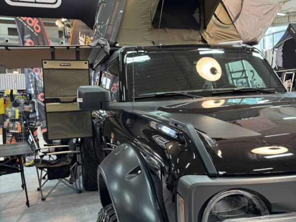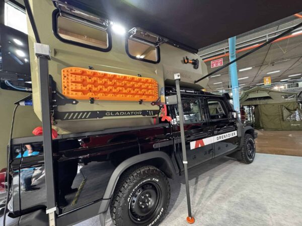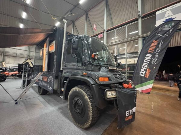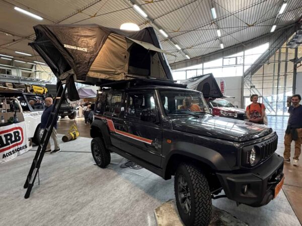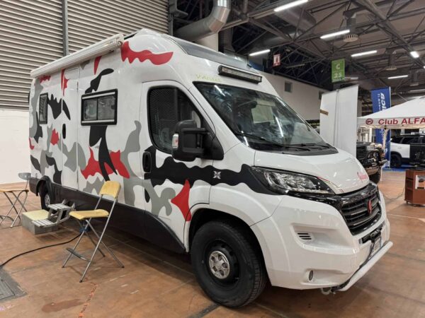 Fuori dall’area espositiva, si vedono veicoli che profumano di strada: pick-up polverosi, van vissuti, camper 4×4 con il mondo tatuato sulla carrozzeria.