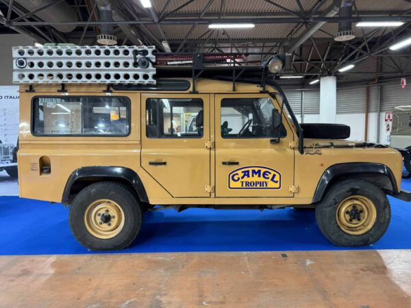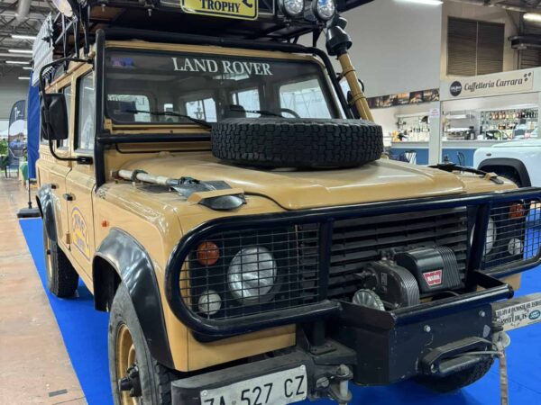 E tutto intorno, quasi a fare da cornice silenziosa, le Land Rover del Camel Trophy sfilano lentamente sugli ostacoli, dorate dal sole pomeridiano.
