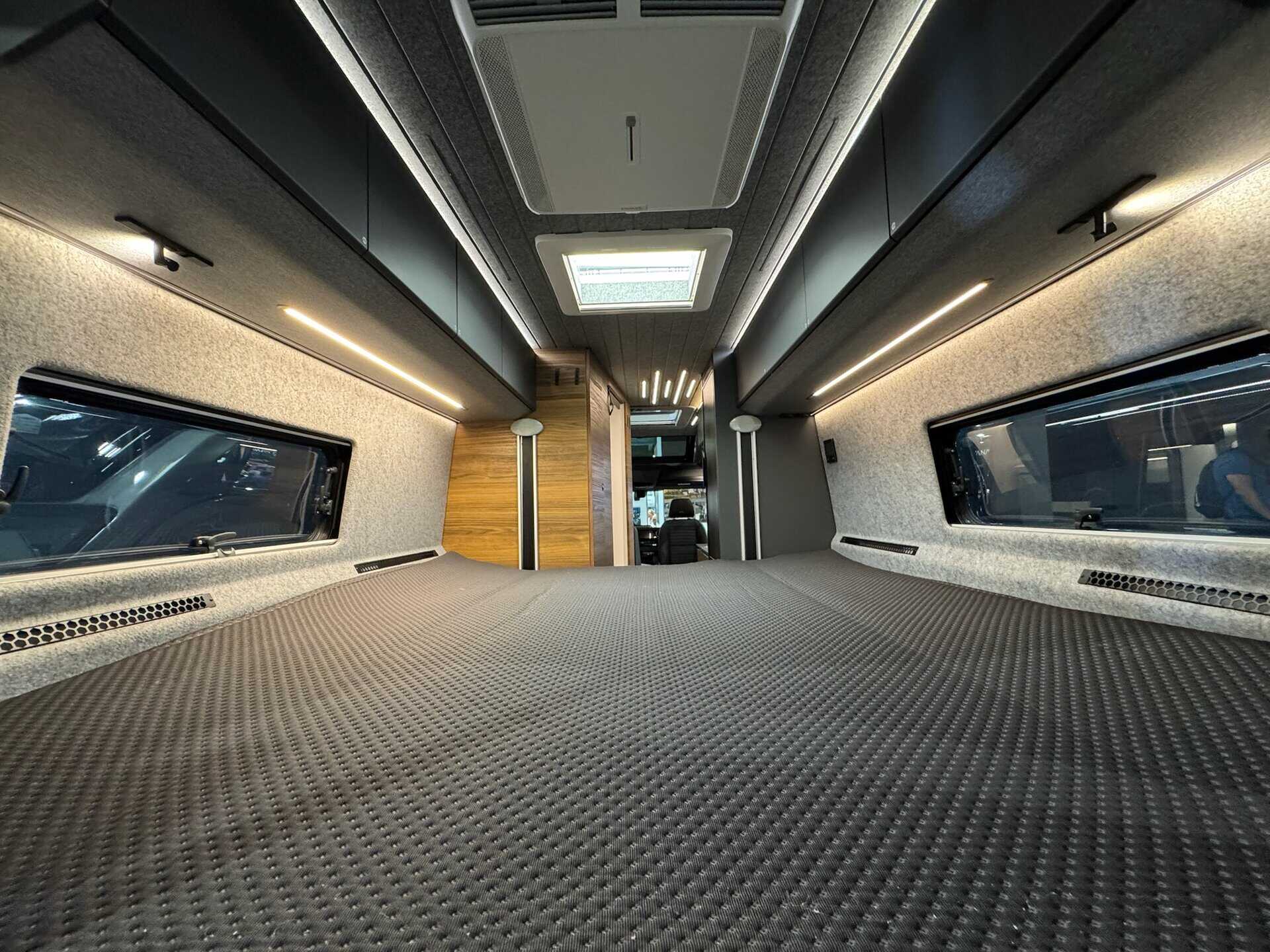 Mercedes-Benz Sprinter con cambio automatico a 9 marce e trazione integrale permanente. La maggior parte dei costruttori preferisce Mercedes o MAN per i 4×4, mentre nessuno ha pensato all’unico van davvero nato per l’off-road: l’Iveco Daily 4×4. Sarebbe un discorso interessante da approfondire, ma lasciamo da parte questo argomento per ora. Qui la differenza è sostanziale: guidabilità, affidabilità, ricambi disponibili ovunque. Il 4×4 permanente Mercedes non è il giocattolino inseribile quando serve, è trazione integrale seria.
