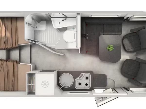 570 CrossOver: equilibrato, frigorifero 133L con freezer, garage fino a 350kg, cucina 3 fuochi. Il compromesso intelligente.