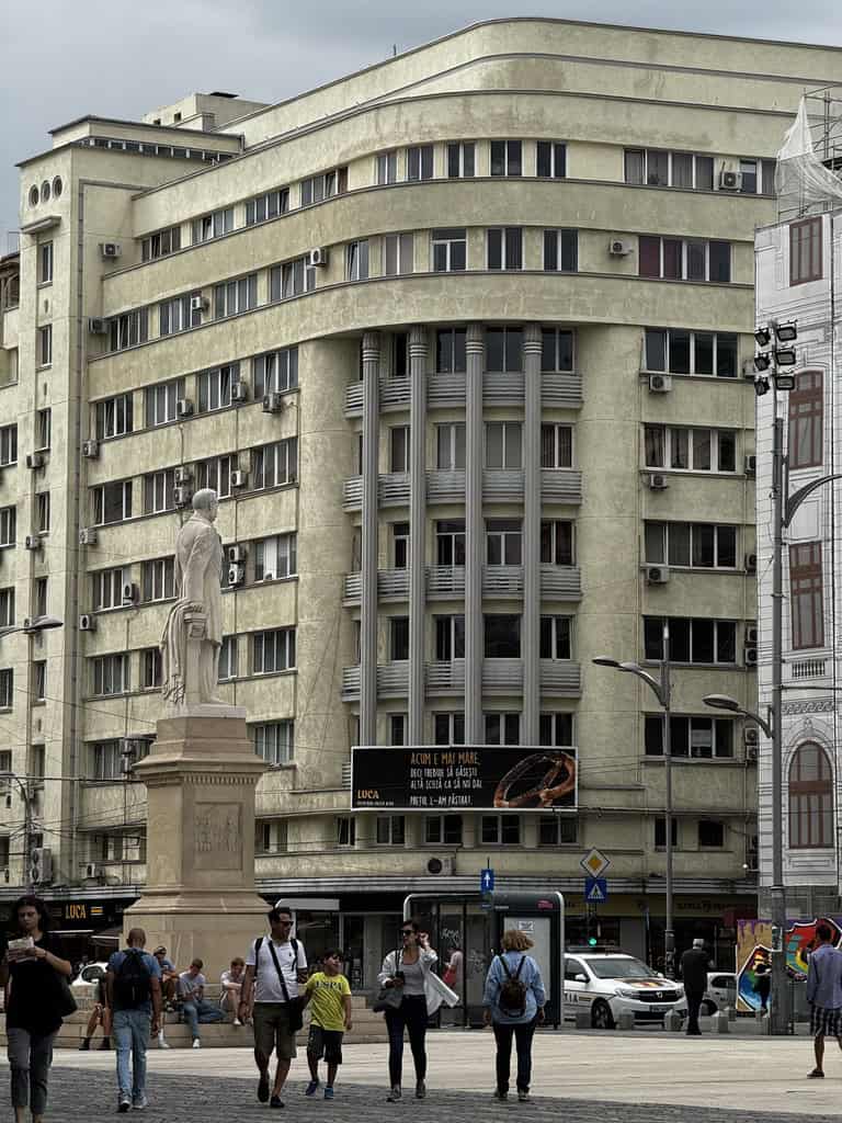 Da lì, ci siamo incamminati lungo Calea Victoriei, uno dei viali storici della città. Qui abbiamo attraversato la Piața Revoluției, simbolo della fine del regime, con i suoi edifici ufficiali e monumenti commemorativi. A poca distanza, ci siamo fermati nella Sala Palatului, importante centro culturale, e abbiamo proseguito fino all’elegante Ateneo Rumeno, con la sua piazza alberata e l’architettura neoclassica che richiama atmosfere da capitale mitteleuropea.