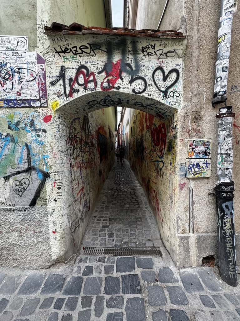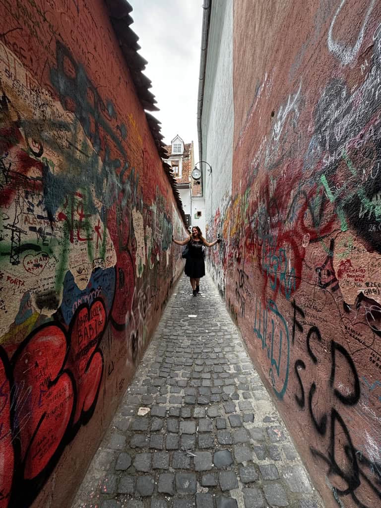 Tra una passeggiata e l’altra, ci siamo divertiti anche a infilarci nella celebre Strada Sforii, una delle vie più strette d’Europa: poco più di un metro di larghezza, una fessura tra le case medievali che un tempo serviva come passaggio per i pompieri. È uno di quei luoghi che si attraversano in pochi secondi, ma che restano impressi nella memoria, perfetti per una foto curiosa e un sorriso.