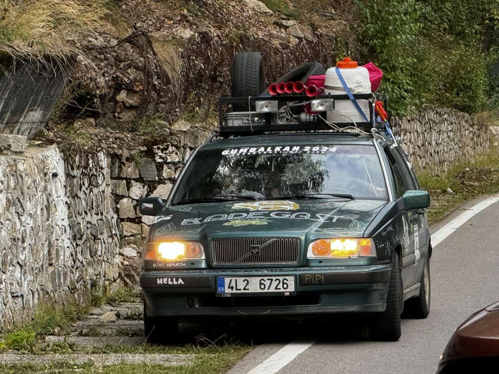 A rendere l’esperienza ancora più surreale è stato lo strano incontro con il GUMBALKAN 2024, un rally non competitivo e coloratissimo, fatto di auto improbabili e addobbate nei modi più folli: tende da tetto, peluche giganti, ruote sul tetto, gonfiabili a forma di fenicottero.