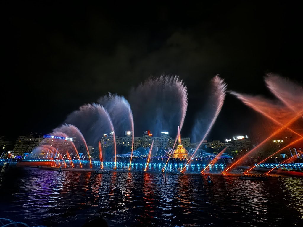 Come benvenuto, abbiamo trovato una città in festa: lo spettacolo delle fontane di Piața Unirii, con giochi d’acqua e luci sincronizzate alla musica, è stato uno dei momenti più suggestivi dell’intero viaggio. Questo evento, noto come “Simfonia Apei”, si svolge regolarmente nei fine settimana estivi ed è una delle attrazioni serali più sorprendenti della capitale rumena.