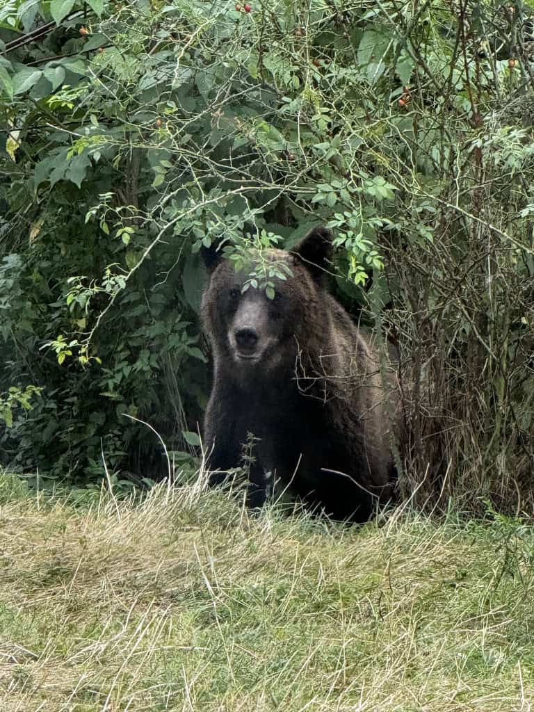 Appena iniziamo a salire, il paesaggio si fa maestoso: pareti rocciose, gole profonde, pini d’alta quota e nuvole che scivolano tra le cime. E tra una curva e l’altra, qualcosa che non ci aspettavamo: gli orsi.