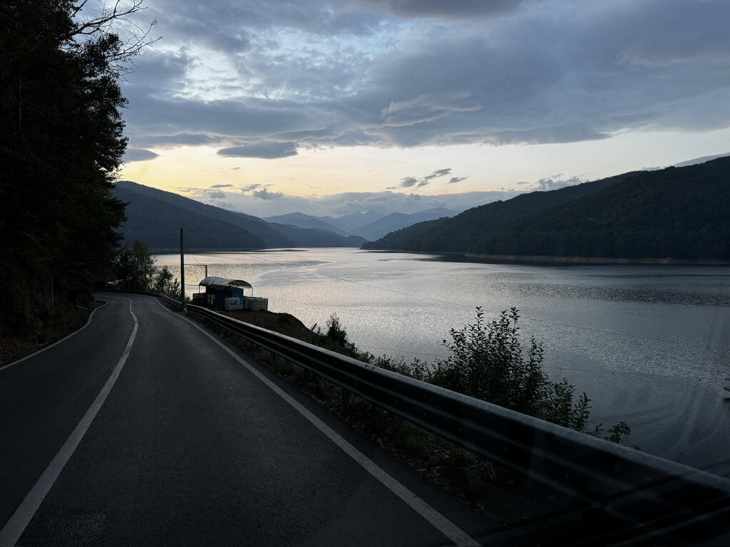 La discesa verso sud è altrettanto spettacolare e impegnativa. Curva dopo curva si scende verso il fondovalle, fino ad arrivare alla Diga di Vidraru, un colosso in cemento che taglia la montagna e regala un panorama bellissimo sul lago artificiale sottostante.